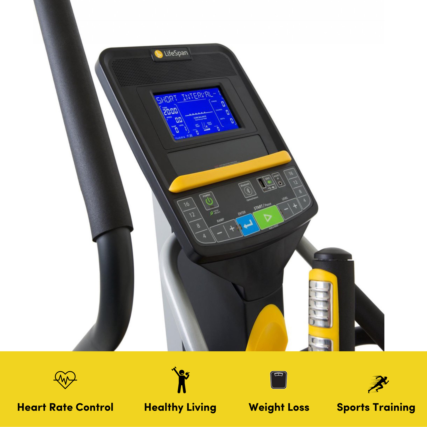 A unique feature of the E2i+ is the patented LifeSpan CoreBalance Technology. This technology identifies exactly where effort imbalances may exist from the first stride that you take. Special sensors in the pedals detect the precise amount of force from each leg. This data is immediately displayed on the console. This prevents you from straining your joints and getting injured.